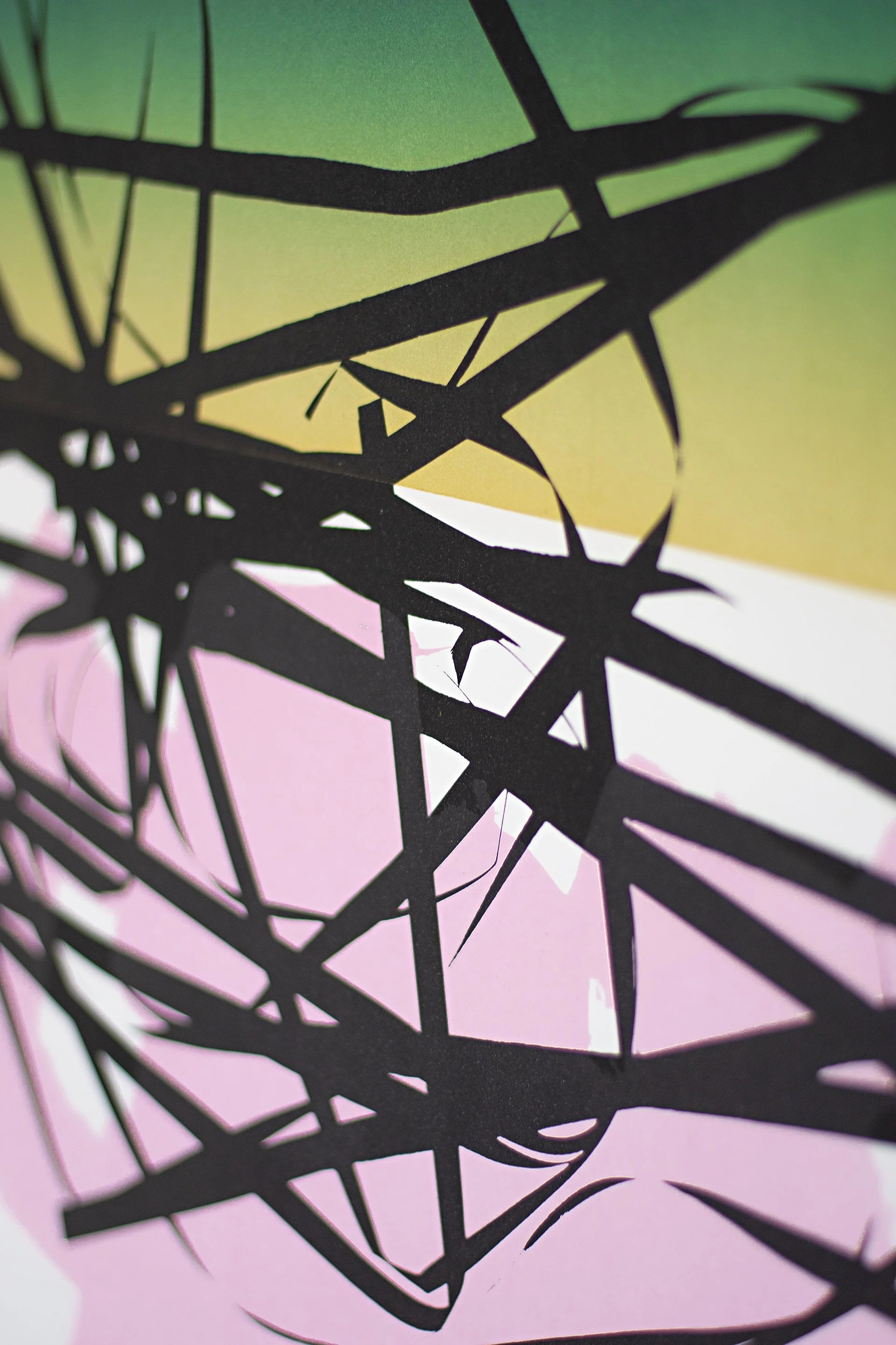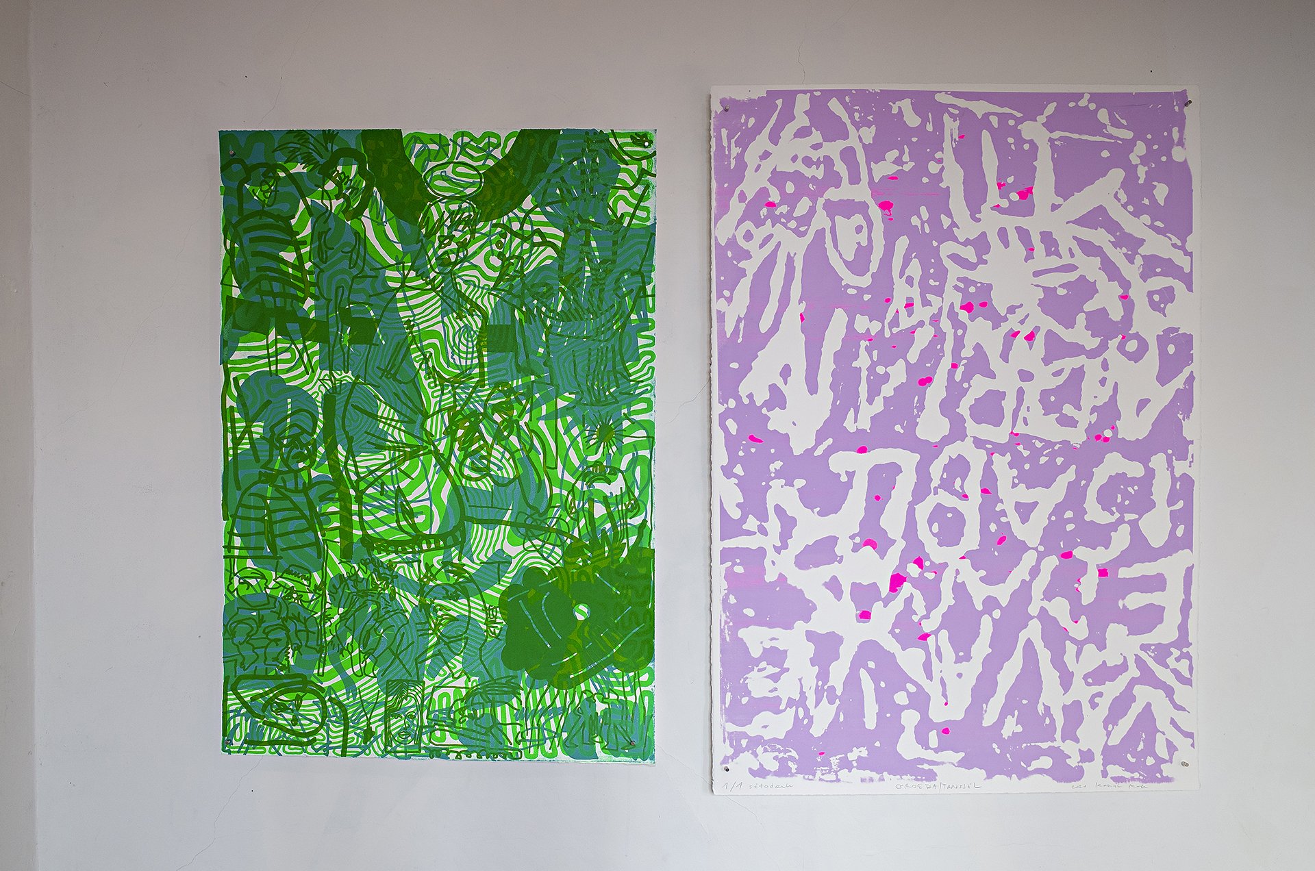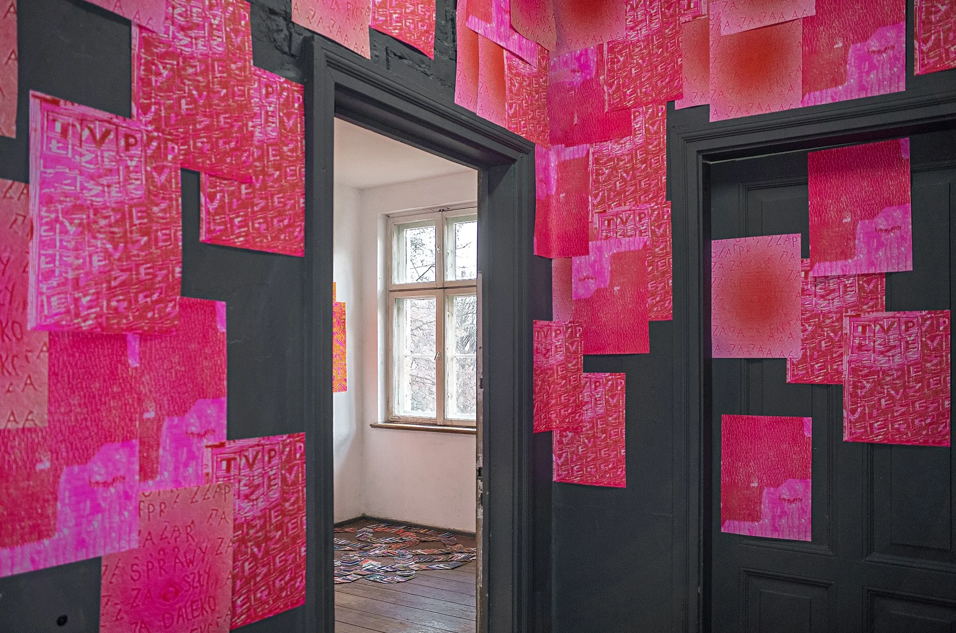 Awakened by the Shriek of the Setting Sun (...) is a thoughtful, original, and multithreaded visual narrative, largely oscillating around the abstraction and symbolism of abstract forms. Combining coincidence with deep self-reflection, the author is dragging printmaking towards performative and conceptual activities with unparalleled grace. The implementation – full of vibrant colors and dynamic compositions – exudes, beyond creative and conceptual exploration, the pleasure of creation; balances the seriousness of the socio-political context with the lightness of childlike exploration. Together with the theoretical work, the project presents great self-awareness, sensitivity, and vigilance, in which the artist perceives artistic activities in the context of the general contemporary visual culture and socio-political discourses. On top of that, the project demonstrates an excellent sense of structuring the image. Even where coincidence takes the lead and creation succumbs to the dictates of losing control, the prints are brilliantly composed, rhythmic, and balanced - flawless in their wandering. (Excerpt from the peer review by Agata Królak, Ph.D.)